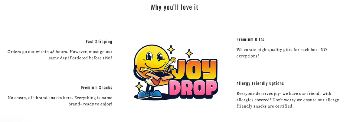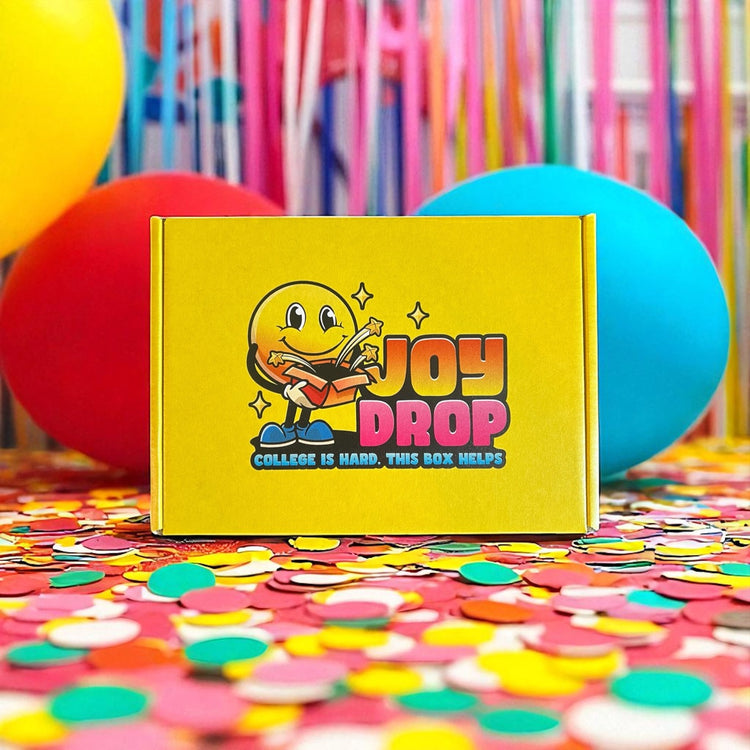 Joy Drop boxes make giving easier, more meaningful, and more impactful. Our boxes aren’t just care packages — they’re a hug from home, a snack-fueled pep talk, and a reminder that someone’s cheering them on.