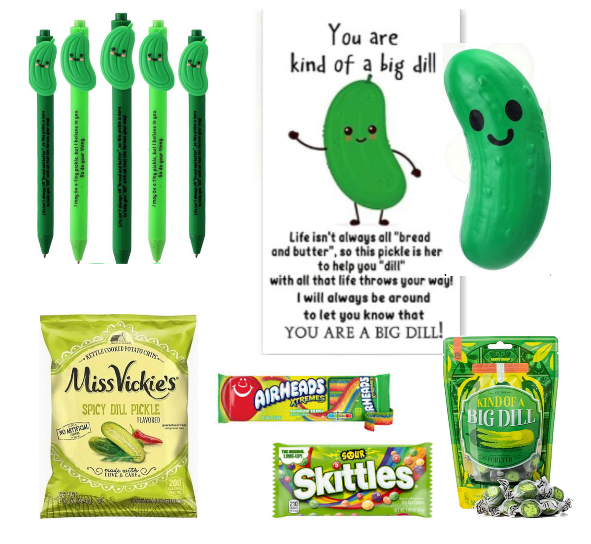 Send some pickle-powered joy with the Big Dill Box! Packed with a cheerful positive pickle, a quirky pickle pen, and a tasty mix of fun snacks, this box is the perfect way to tell your favorite person they’re a big “dill.” Brighten their day with a playful gift that’s as unique and delightful as they are!