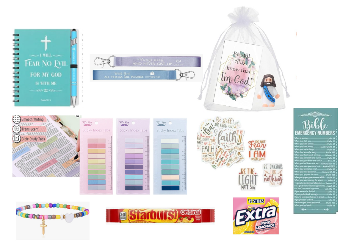 Send a joyful boost with the Blessing Box For Her! This cheerful care package is packed with a notepad and pen to inspire her thoughts, colorful sticky tabs for her Bible, and uplifting stickers to brighten her days. She’ll love the Jesus pocket pal as a sweet reminder of His love, a premium beaded cross bracelet to wear her faith, a premium scripture key chain, a Bible bookmark, and delicious treats to satisfy her sweet tooth. Perfect for college days, it’s faith, fun, and a little flavor all wrapped up to uplift her spirit!